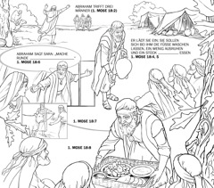 • Mal die Bilder aus. • Lies die Bibeltexte. Wie verstehst du sie? Vervollständige die Sätze. • Versteckspiel: Findest du 1. die Eidechse und 2. das Messer?
