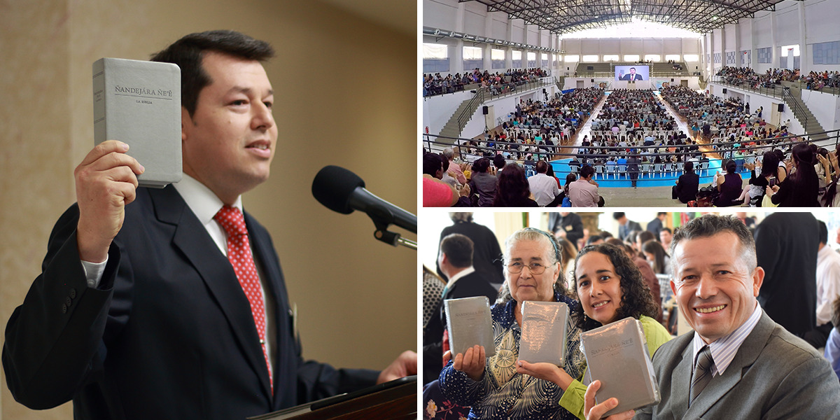 Le 16 août 2019, les Témoins de Jéhovah ont fait paraître La Bible. Traduction du monde nouveau en guarani lors d’une assemblée régionale diffusée depuis l’auditorium du Béthel de Capiatá, au Paraguay. Frère Daniel González, membre du Comité de la filiale du Paraguay, a annoncé la parution de la Bible lors du premier jour d’assemblée. Des assistants réunis dans 13 autres endroits ont bénéficié d’une liaison vidéo. En tout, 5 631 personnes ont pu suivre le discours annonçant la parution de la Bible.